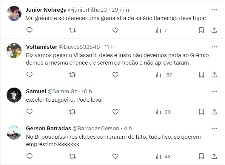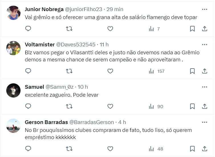 Diante disso, sem querer realizar grandes investimentos para ter o jogador na equipe, a intenção da diretoria gaúcha é buscar a chegada através de empréstimo válido por uma temporada. Ou seja, até dezembro de 2024.