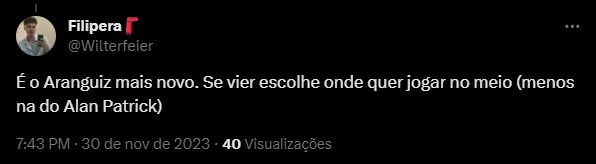 Segundo o portal, o jogador também entrou na mira da Inter de Milão, o que pode dificultar uma eventual investida colorada, principalmente pelos valores. As negociações são lideradas pela atual gestão de Alessandro Barcellos.