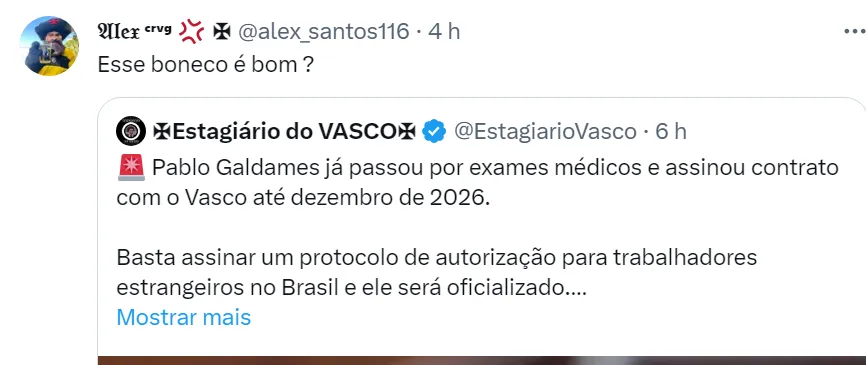 “Basta assinar um protocolo de autorização para trabalhadores estrangeiros no Brasil e ele será oficializado. No “Gigante da Colina” esperam anunciá-lo e apresentá-lo em conferência de imprensa entre segunda e quarta-feira”, disse o jornalista em sua conta no X.