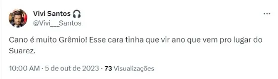 Nas redes sociais, por exemplo, alguns gremistas estão pedindo uma contratação imediata para o próximo ano: Germán Cano. O centroavante, que fez 50 jogos pelo Fluminense em 2023, soma 36 gols marcados e 2 assistências, sendo importante demais aos cariocas na campanha da Libertadores, chegando até a grande final, eliminando o Internacional na última quarta-feira (4).