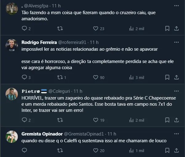 A intenção de Alberto Guerra é firmar um acordo de empréstimo com opção de compra, algo parecido com Soteldo. No entanto, justamente por estar buscando vários nomes de um time rebaixado, os gremistas “ligaram o alerta” nas redes sociais.