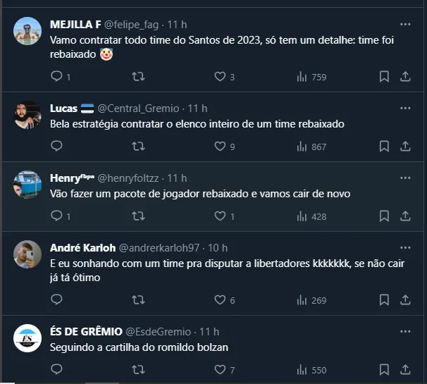 Vale frisar que, depois de subir da Série B sem muito brilho em 2022, o Clube Gaúcho investiu em mais de 15 jogadores no ano passado, montando um plantel praticamente novo e apostando no trabalho de Renato Portaluppi.