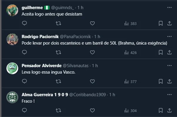 Vale destacar que, mesmo que o chileno seja repassado por empréstimo, o contrato proposto deverá contar com uma opção de compra. Por fim, vale frisar que o contrato de Kuscevic com o Coritiba vai até 2026.