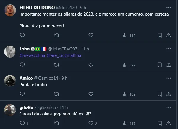 A tendência é que o jogador assine um novo vínculo com o Gigante da Colina por mais uma temporada. Seu atual contrato vai até junho de 2025, ou seja, o novo vínculo iria até junho de 2026.