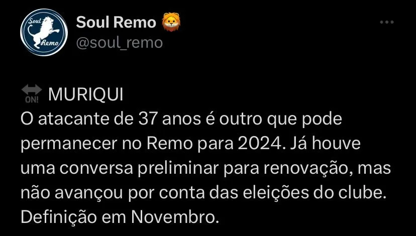 Muriqui foi o grande destaque do Remo na temporada de 2023, o atleta foi o artilheiro do Leão, mesmo que o time tenha sido eliminado da Série C, o camisa 10 chamou a atenção de outros clubes e revelou as possibilidades dele permanecer no Remo em 2024. Agora oito times seguem na disputa pelo título da Série C do Campeonato Brasileiro: Brusque, Operário-PR, São Bernardo, São José-RS, Amazonas, Botafogo-PB, Paysandu e Volta Redonda.