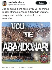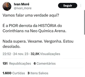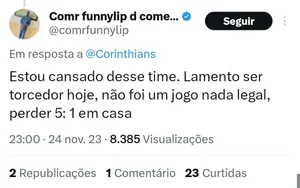 Ao ser questionado sobre planejamento do clube e se a gestão do Corinthians teve responsabilidade, o treinador também chamou a responsabilidade para si. "Seria muito canalha se falasse do planejamento do clube. Nada disso justifica o que aconteceu hoje".