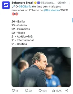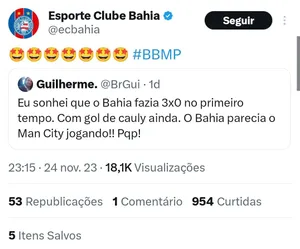 O Bahia surpreende neste primeiro tempo e vai para o intervalo com a vantagem de 3 a 0 no marcador, mas Cauly parece ainda não está tranquilo com o resultado de momento.