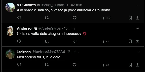 “Vou ser breve com vocês porque estou viajando há mais de 17 horas, estamos cansados. Não tenho muito o que falar sobre esse assunto ainda“, comentou Coutinho ainda no aeroporto.