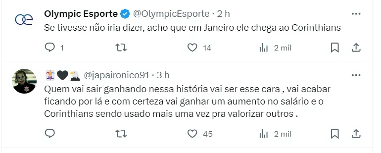 Entretanto, pode acabar tendo baixas importantes para a próxima temporada, o que vem preocupando a diretoria. Isso porque, o presidente do Corinthians, Augusto Melo, quer a contratação de Rodrigo Caetano para comandar o departamento de futebol do Clube.