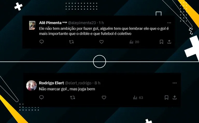 Comentários como “Wesley tá no triatlo das Olimpíadas” e críticas sobre sua falta de ambição são frequentes. No entanto, há também quem defenda o jovem atacante, destacando seu potencial e a necessidade de mais confiança e foco.