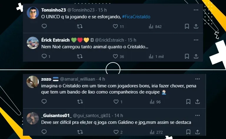 Dito isso, um dos poucos nomes do elenco que continua em alta é o do argentino Franco Cristaldo. Inclusive, sua boa atuação foi tema para mais críticas ao comandante gremista.