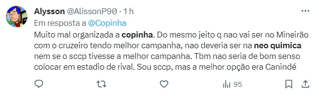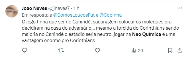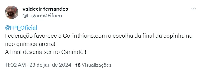 A decisão da FPF em realizar o jogo na casa do Corinthians, realizou grandes manifestações de cruzeirenses nas redes sociais pedindo que a partida fosse realizada em um estádio mais neutro.