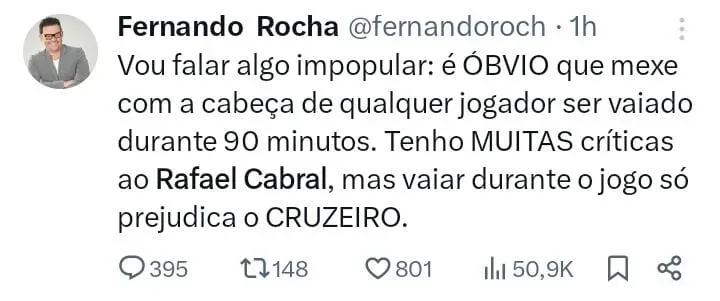 Agora o Cruzeiro recebe o Botafogo neste domingo(14) às 17h, horário de Brasília. A equipe busca quebrar a sequência e voltar a encontrar o caminho das vitórias em casa após ser superada pelo Atlético-MG por 3×1 na final do Campeonato Mineiro e ceder o empate na Sul-Americana no último minuto.