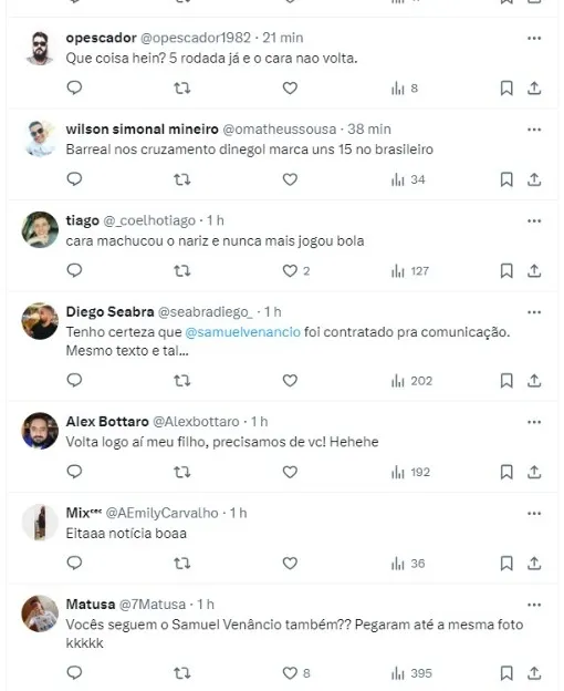 “O atacante Juan Dinenno iniciou os trabalhos híbridos entre fisioterapia e preparação física, na Toca da Raposa 2“, publicou o Cruzeiro em uma postagem nas redes sociais.