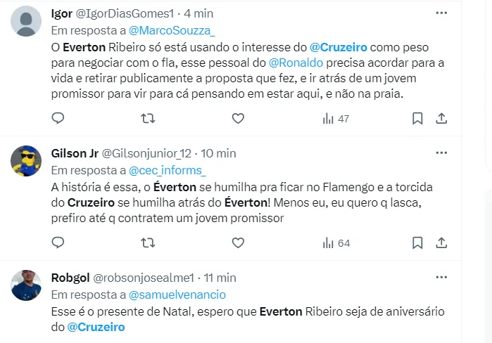 Com todo este cenário, a torcida do Cruzeiro segue com a expectativa lá em cima sobre um possível retorno de Éverton Ribeiro para a Toca da Raposa. As próximas semanas deverão ser decisivas para o start de uma possível investida do Cabuloso.