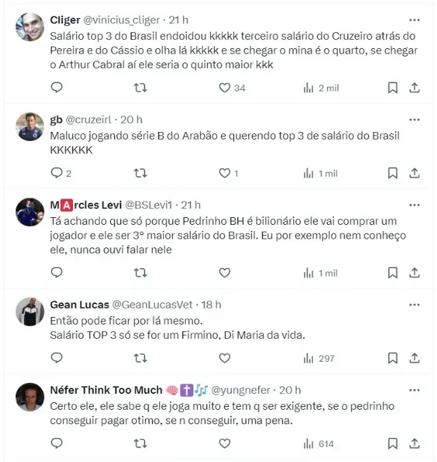 Além disso, o empresário norte-americano descartou qualquer possibilidade em entrar em um leilão pelo atleta. O Cruzeiro, por sua vez, apresentou uma proposta de 250 mil euros (R$ 1,2 milhão) mensais e uma bonificação.