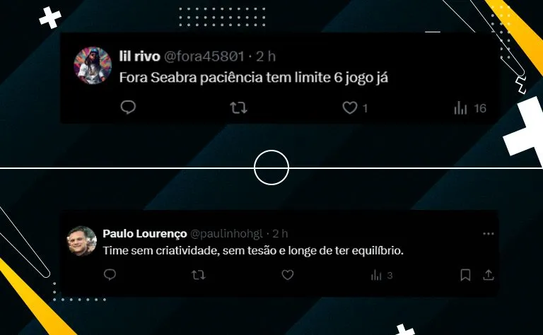 “O Seabra destruiu o próprio esquema tático com os reforços. O Cruzeiro decaiu muito, mesmo com jogadores de maior qualidade. A diretoria precisa agir antes que seja tarde demais”, comentou outro torcedor.