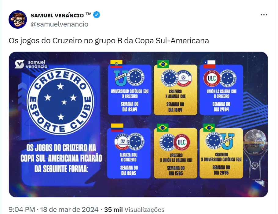 Cruzeiro é favorito no Grupo B da Sula?