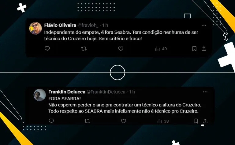 A torcida do Cruzeiro expressou seu descontentamento nas redes sociais e perfis oficiais do clube, exigindo mudanças urgentes na comissão técnica. Críticas ao técnico Fernando Seabra se tornaram predominantes, com muitos torcedores alegando que suas escolhas e estratégias têm prejudicado o desempenho da equipe.