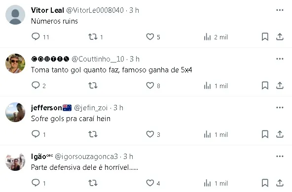 Torcedores do Cruzeiro, no entanto, demonstram certa desconfiança em relação ao técnico devido aos números de suas equipes, especialmente pela tendência de sofrer muitos gols.