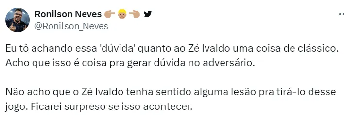O jogador foi relacionado para a partida. Porém, ainda segue sendo dúvida para o Cruzeiro. Se ele estiver em condições de entrar em campo, tende a ser um dos 11 titulares.