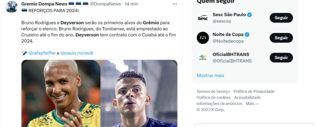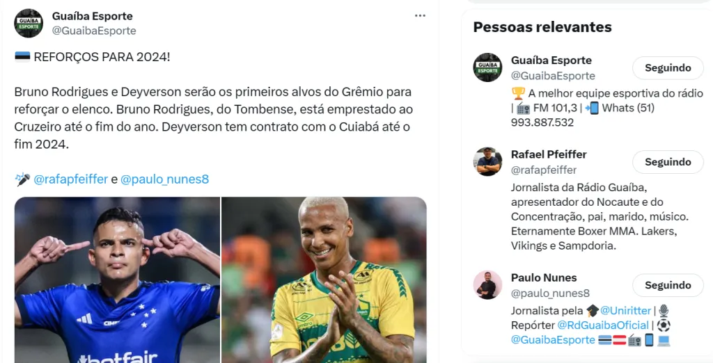 E ainda com um mês de jogos adiante, o Grêmio já tem nomes ‘vazando’ de sua lista. Os setoristas Rafael Pfeiffer e Paulo Nunes, da Rádio Guaíba, informa que Deyverson está no topo da relação de jogadores observados.