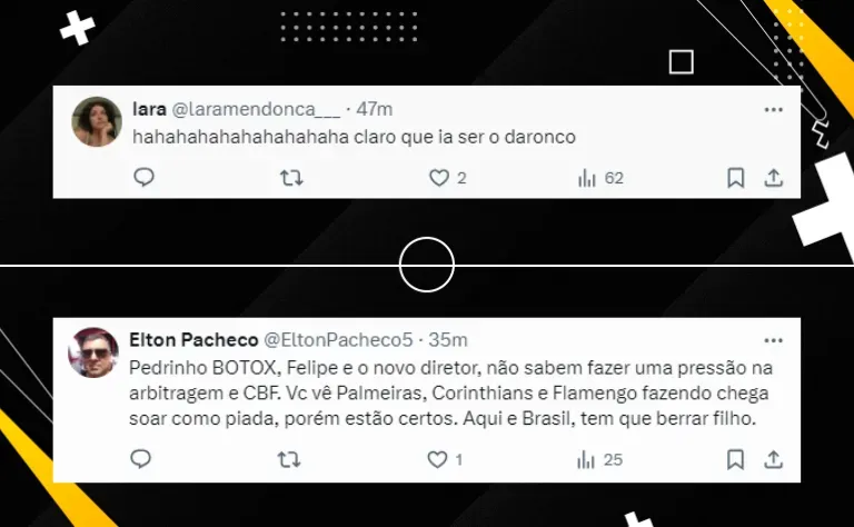 A torcida do Gigante da Colina se enfureceu após o anúncio do árbitro para apitar o jogo. Um torcedor comentou: “Não aguento mais esse cara, ruim demais”. Outro completou: “A CBF e comissão de arbitragem ri da cara do Vasco”.