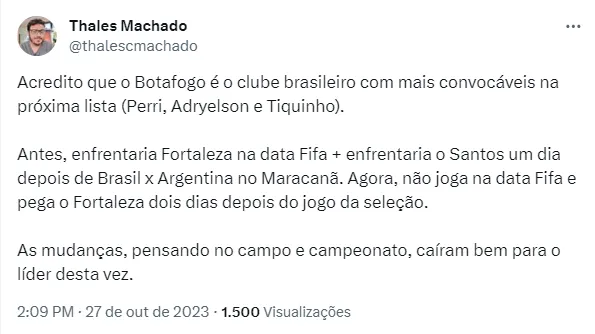 Pois bem, nesta sexta-feira, mais uma vez, a CBF alterou as datas de jogos do Fogão e de mais alguns clubes. Em nota, a Confederação disse que o remanejo dos jogos teve de ser feito “para garantir o equilíbrio técnico da competição”. A entidade ainda explica que os conflitos do calendário se deram por conta do cronograma da Sul-Americana, que iniciou um novo formato com play-offs e precisou de três datas novas no cronograma do futebol brasileiro.