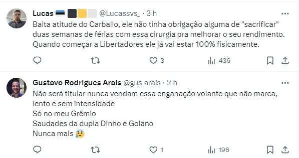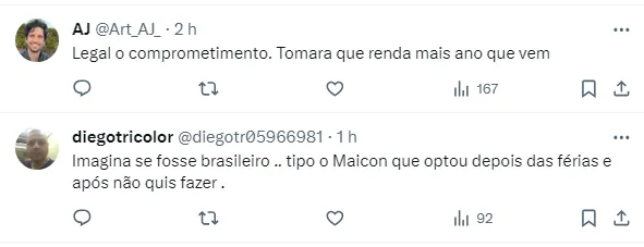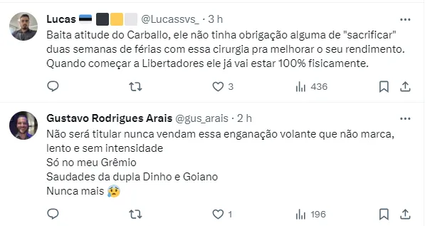 No entanto, com o retorno das dores, o volante optou pelo procedimento cirúrgico, pensando em retornar 100% para a temporada de 2024. Sendo assim, o uruguaio ficará suas férias se recuperando da cirurgia. Confira o trecho da nota: