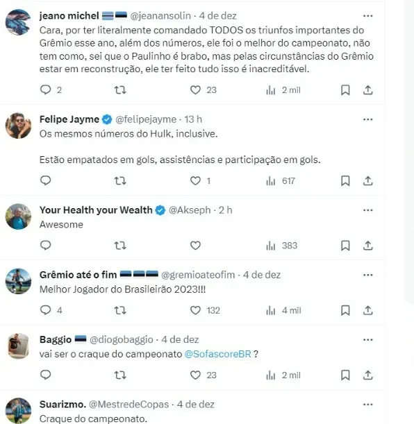 A equipe de Porto Alegre fez uma boa campanha no Campeonato Brasileiro. Atualmente, o Grêmio ocupa o quarto lugar da tabela de classificação, com 65 pontos conquistados.