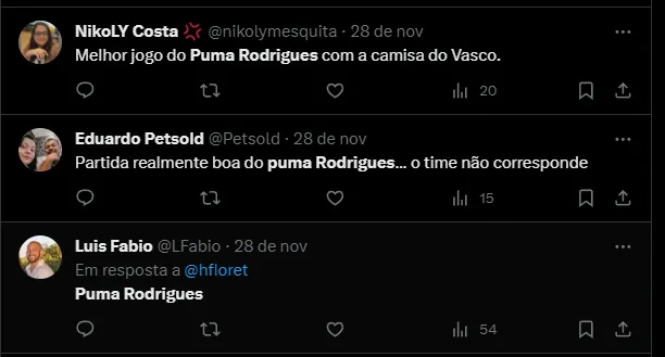 Tudo mudou nas rodadas mais recentes do Campeonato Brasileiro. Nos últimos três jogos, Puma marcou dois gols e deu uma assistência, sendo fundamental para a briga do Vasco pela permanência.