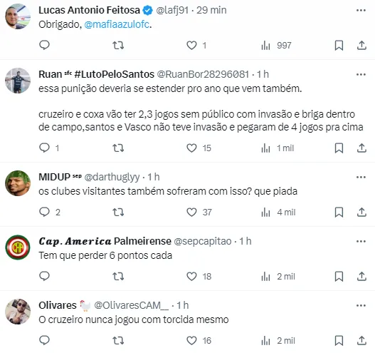 O que os torcedores dizem: