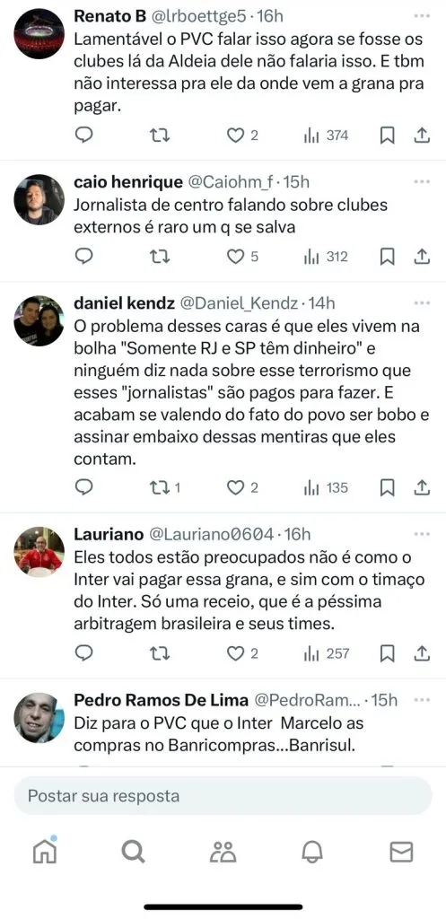 As críticas de PVC a janela do Internacional não pararam por aí. O jornalista se mostrou preocupado com a forma que o Internacional vem gastando seu dinheiro no mercado. Na visão do profissional, a falta de títulos tá fazendo com que o Colorado use um dinheiro que não tem e que isso possa ser prejudicial lá na frente.