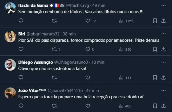 Entretanto, uma declaração de John Wander, dono da SAF do Alvinegro de São Januário, acabou chamando a atenção dos vascaínos de maneira negativa. Ele fala sobre as expectativas geradas e a frustração, algo já veiculado aqui no Bolavip Vasco.