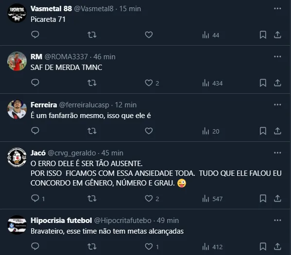 Não à toa, apesar de ser dia de estreia no Brasileirão e do torcedor do Gigante da Colina ter muitas coisas para se preocupar, as declarações de Josh Wander não foram bem vistas e repercutiram negativamente.