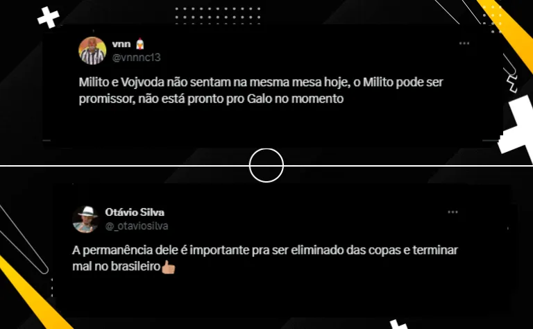 Inclusive, o investidor demonstrou estar satisfeito com o trabalho feito até agora, como revelou o apresentador João Vitor Xavier: “(O Galo) acredita que Milito será um grande treinador em muito pouco tempo e precisa ter paciência para colher os frutos do trabalho de longo prazo. A direção não pensa em demitir. (o Clube Mineiro) quer que Milito continue pois tem gostado do ambiente, do dia a dia, da boa relação com jogadores”, afirmou.