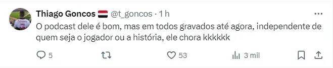 Dentre alguns nomes que já passaram pelo podcast, que já tem 820 mil inscritos, estão: Cicinho, Luís Fabiano, Ricardo Oliveira, Galvão Bueno, e muitas outras celebridades do meio do futebol.