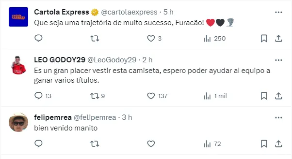 O lateral terá um vínculo com o Furacão para quatro temporadas. Godoy pertencia ao Estudiantes, da Argentina, onde estava há três temporadas e acabou despertando o interesse do Rubro-Negro.
