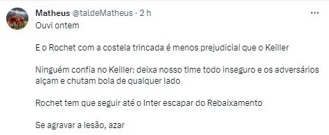 Contudo, Rochet, ao desembarcar em seu país natal, o arqueiro que logo quando chegou se transformou em uma peça-chave do Internacional, concedeu entrevista e fez uma revelação que preocupa a caserna Colorada.