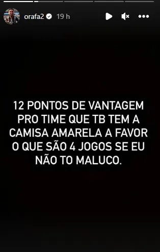 “12 pontos de vantagem para o time que também tem a camisa amarela (arbitragem) a favor, que são quatro jogos (de vantagem) se eu não estou maluco. Estava analisando algo aqui sobre o jogo de ontem… Às vezes os comentaristas perguntam porque os jogadores reclamam. É simples, no lance de ontem nenhum jogador do Botafogo foi reclamar com o juiz e o Claus ignorou a falta. No jogo contra o Coritiba, todos foram reclamar com o juiz, ele ficou assustado e simplesmente deu a falta. Por que reclamamos? Se ver a falta, vai ser. Foi uma falta clara do Tchê Tchê e ele não deu. Os árbitros pedem que os jogadores reclamem. Se não reclamar não tem falta”, disse Rafael.