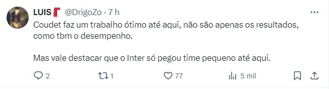 Em 12 partidas os Colorados somaram dez vitórias, um empate e uma derrota, um aproveitamento de 86%. Nem os invictos no ano, Flamengo, Palmeiras e Cuiabá conseguiram superar o aproveitamento do Inter.