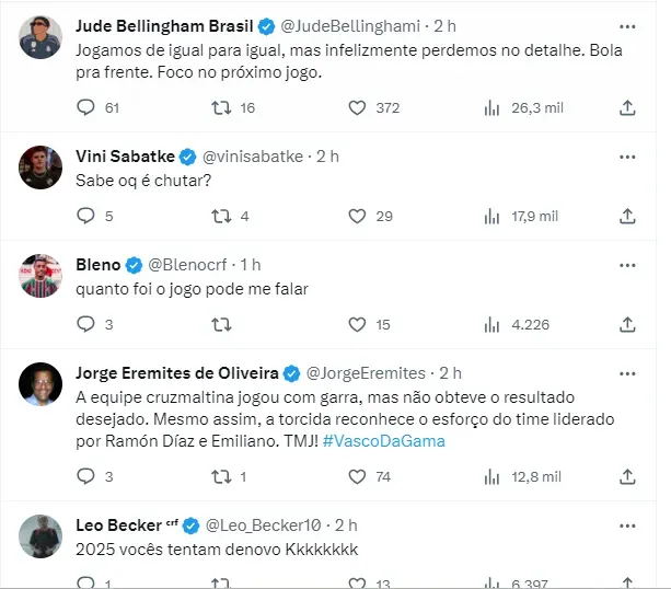 Depois do duelo, Gary Medel concedeu entrevista e falou sobre o confronto. O jogador retornou ao Vasco após representar a sua seleção na Data Fifa. Gary é chileno e tem sido um dos destaques do Cruzmaltino. No entanto, diante da derrota no clássico, o jogador acabou lamentando o resultado, devido o Vasco ter tido boas chances.