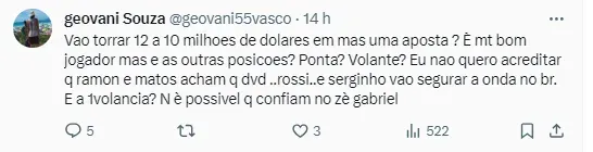 Sendo assim, se por um lado o Cruzmaltino pode perder Gabriel Pec e Orellano, por outro, movimentações vêm sendo feitas para alguns nomes chegarem e fazerem companhia para Payet e seus companheiros.