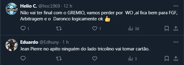 Isto é, o Grêmio não corre o risco de perder ninguém por conta de dois amarelos na partida de ida de uma eventual final. Contudo, alguns atletas podem “se pendurar” em caso de amarelo no jogo contra o Grená do Povo.