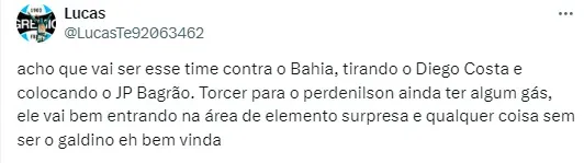 A publicação ainda aponta a grande possibilidade de Renato Portaluppi preservar alguns de seus titulares para o confronto que acontece às 21h (horário de Brasília). São eles: o lateral Fábio, o meia Pepê e o atacante Soteldo.
