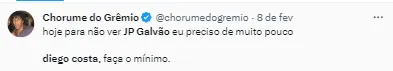 Agora, o Portal do Gremista, trouxe uma atualização nos bastidores sobre a situação do atacante brasileiro, naturalizado italiano. A chegada de Diego Costa influenciou na decisão neste primeiro momento.