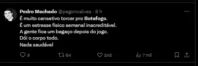“Para isso, eu acho que tem que jogar de forma mais compacta, tanto para defender, quanto para atacar, porque assim desgasta menos, vai conseguir controlar mais o jogo, isso é algo que o Botafogo tem que desenvolver”, pontuou Diego.