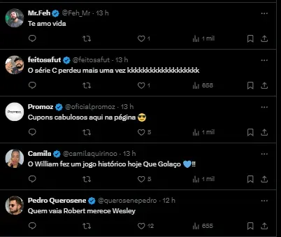 “O time hoje não foi o mesmo que jogou contra Juventude, Botafogo ou Atlético-GO. O jogo de hoje não tem nada a ver com os outros. Jogamos bem contra o Cruzeiro, time todo mexido, com muitos jogadores fora”, pontuou Diniz.