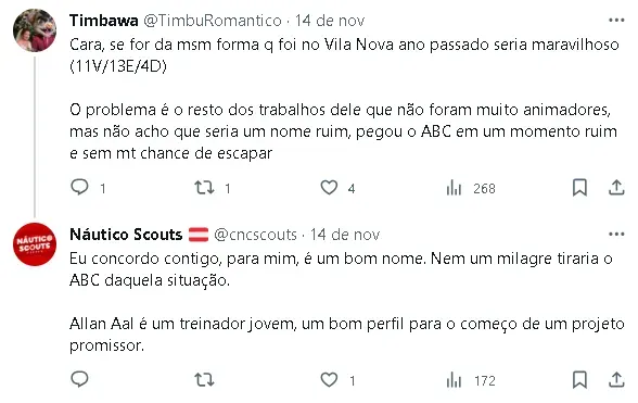 O Náutico definiu seu treinador para a temporada de 2024: Allan Aal, paranaense de 44 anos, que recentemente comandou o ABC na Série B. As negociações, iniciadas durante o período eleitoral do Timbu, ganharam intensidade na terça-feira e foram oficializadas na noite de quarta-feira.