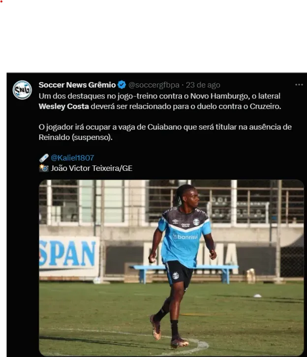 Torcedor gremista, você negociaria o Wesley Costa por essas condições?